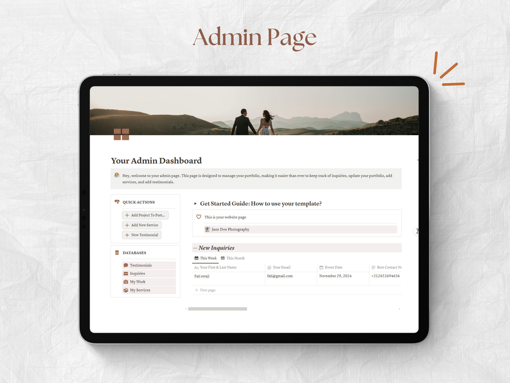 Photographer Portfolio Page & Admin Dashboard Notion Template